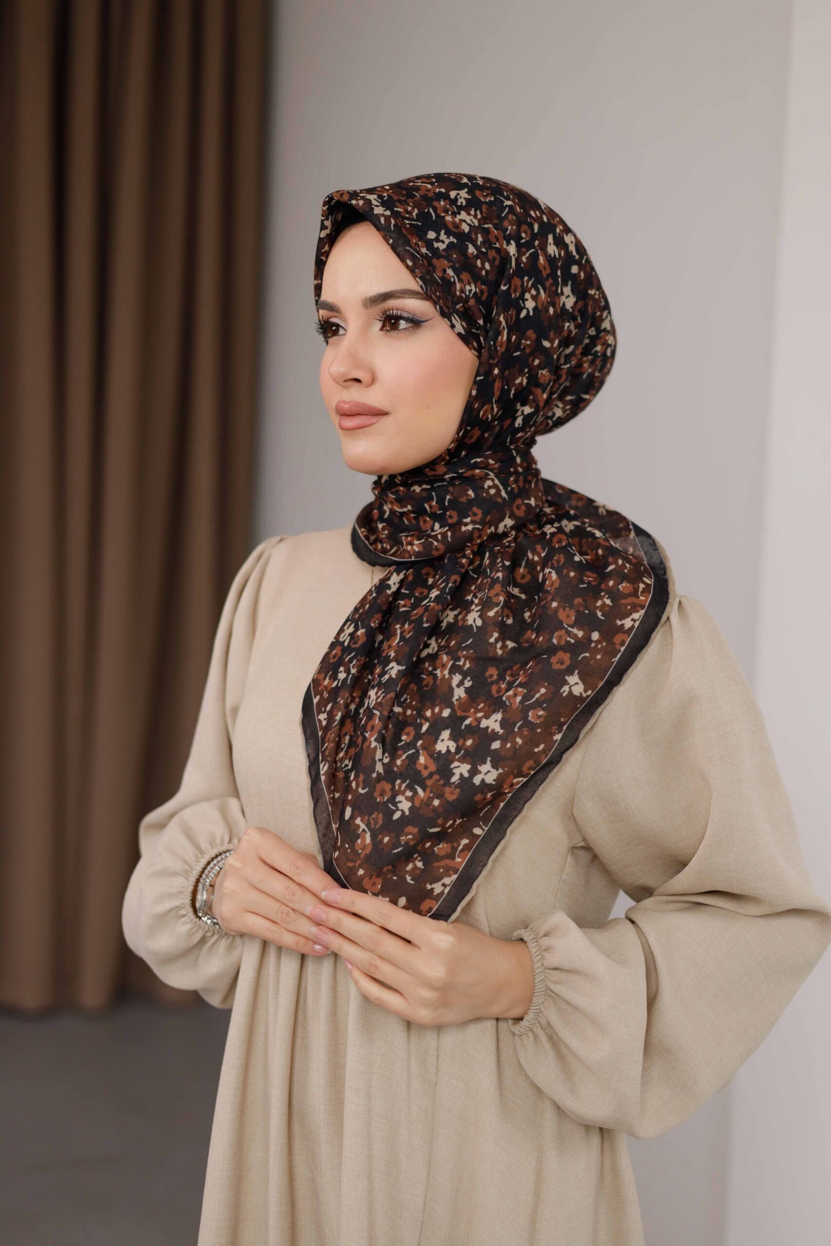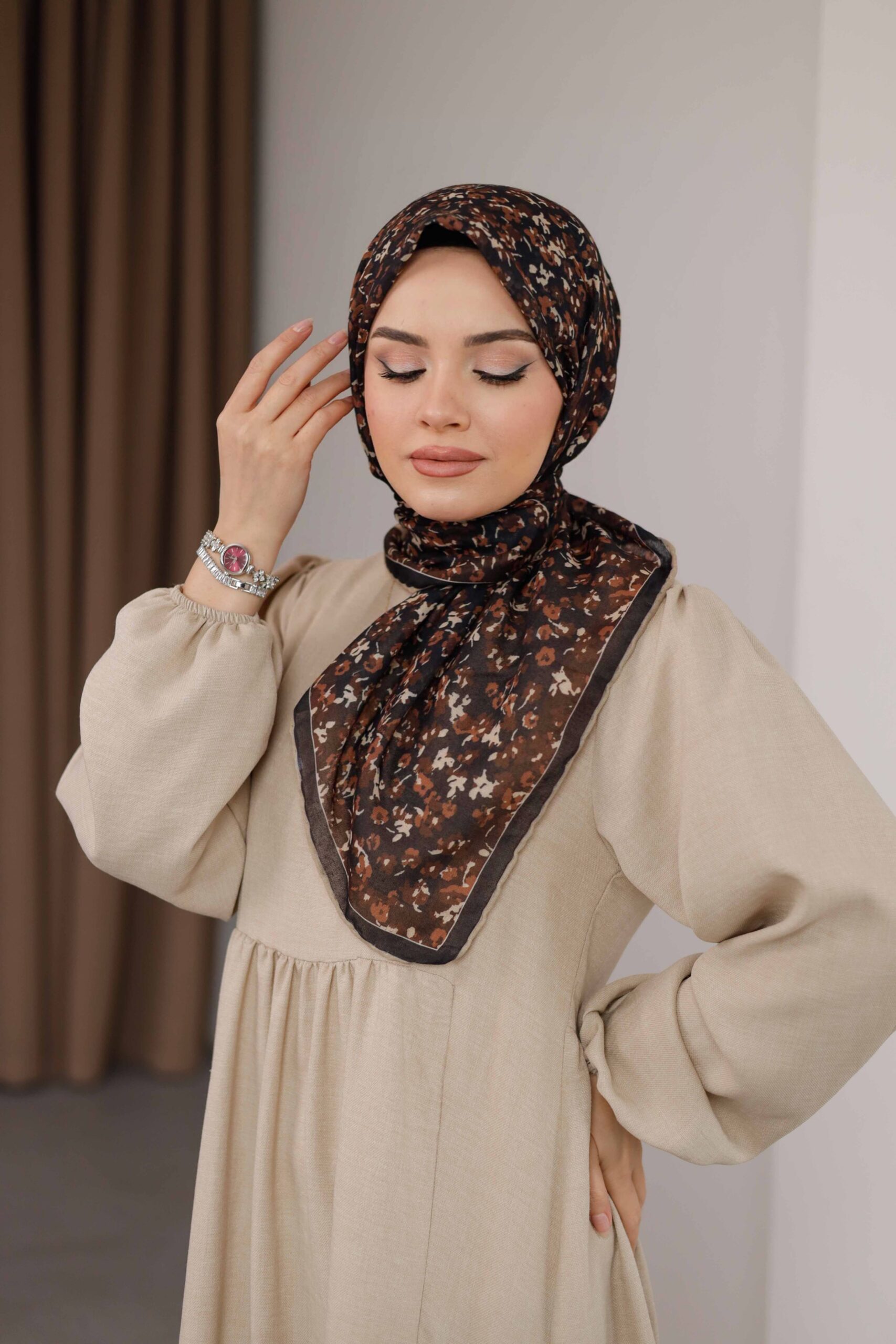 Flora Desen Soft Eşarp – Kahve