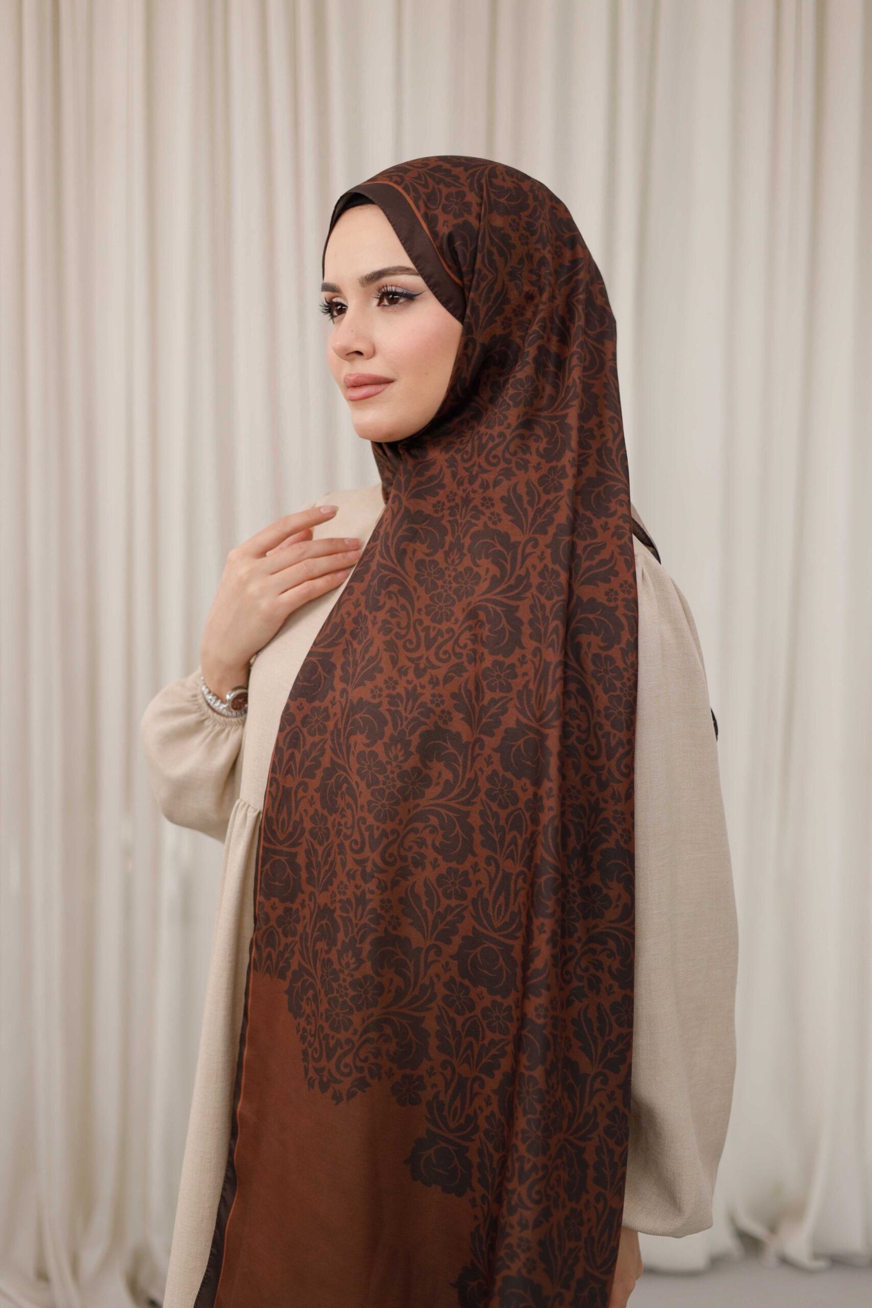 Nevra Desen Soft Şal, zarif desenleri ve yumuşacık dokusuyla stilinize anında şıklık katar. Gün boyu konfor sunan hafif yapısı sayesinde başta ağırlık yapmaz, kolay şekil alır ve kayma yapmaz.